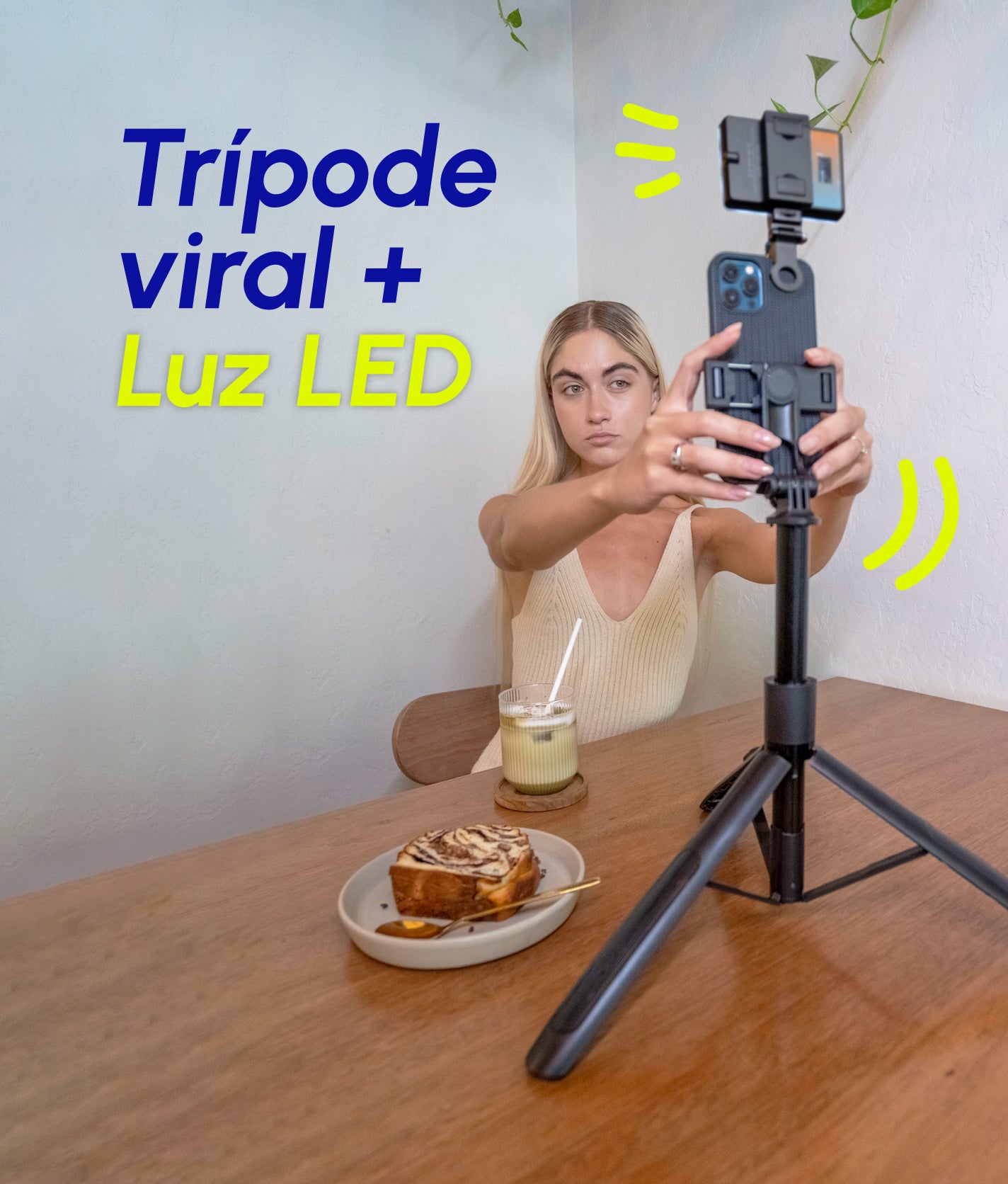 Trípode Aesthetic + Luz Led Celular + Micrófono Negro