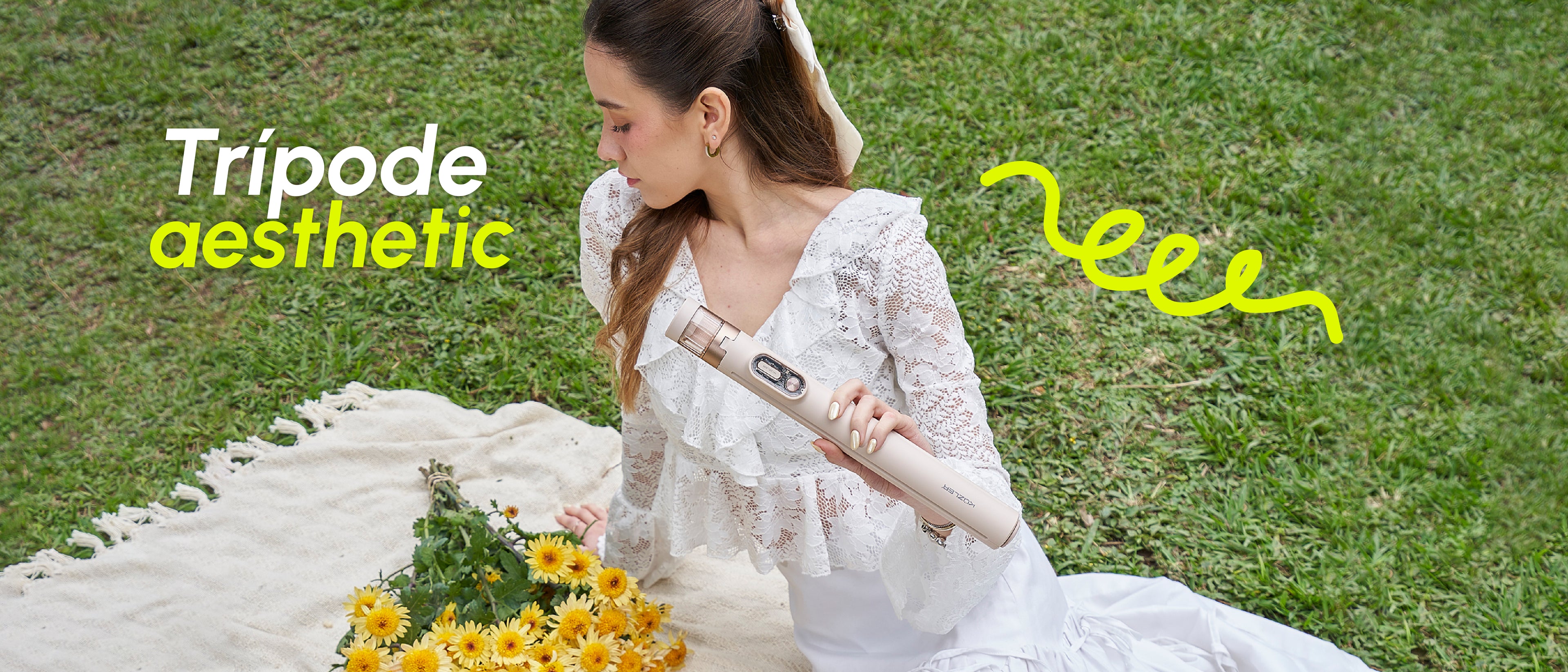 Trípode Aesthetic + Luz Led Celular + Micrófono Rosado