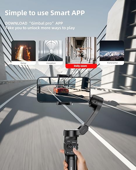 - Compatibilidad universal: compatible con iPhone y Android de hasta 7 pulgadas. Usa la app Gimbal Pro para funciones avanzadas.