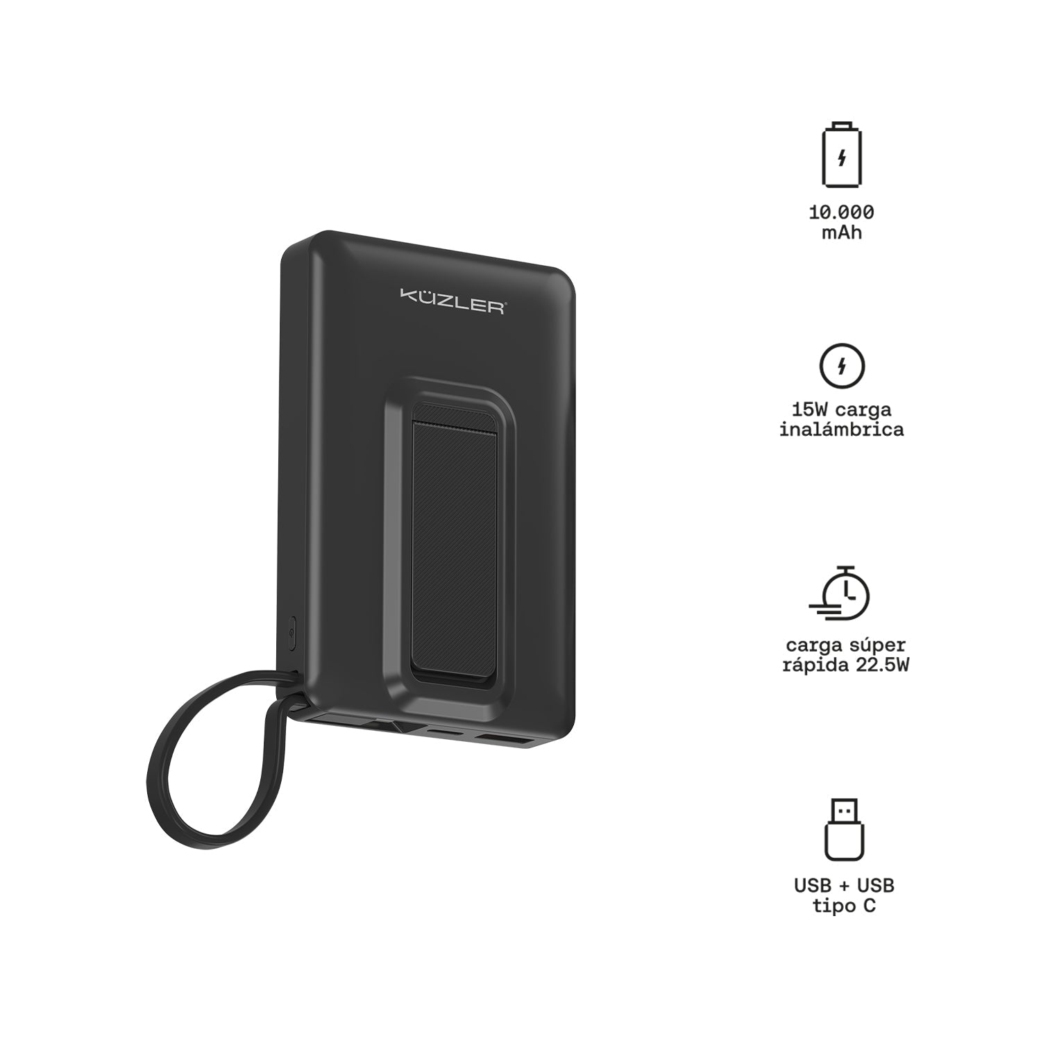 Con una capacidad de 10,000 mAh, este powerbank proporciona aproximadamente 2 cargas completas para smartphones de alta gama como el iPhone 14 o el Samsung S23