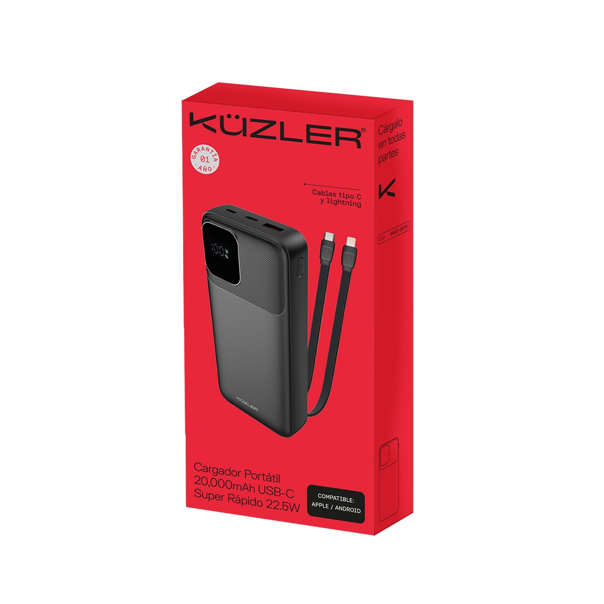 Powerbank 20,000mAh carga super rápida 22,5W cables incorporados