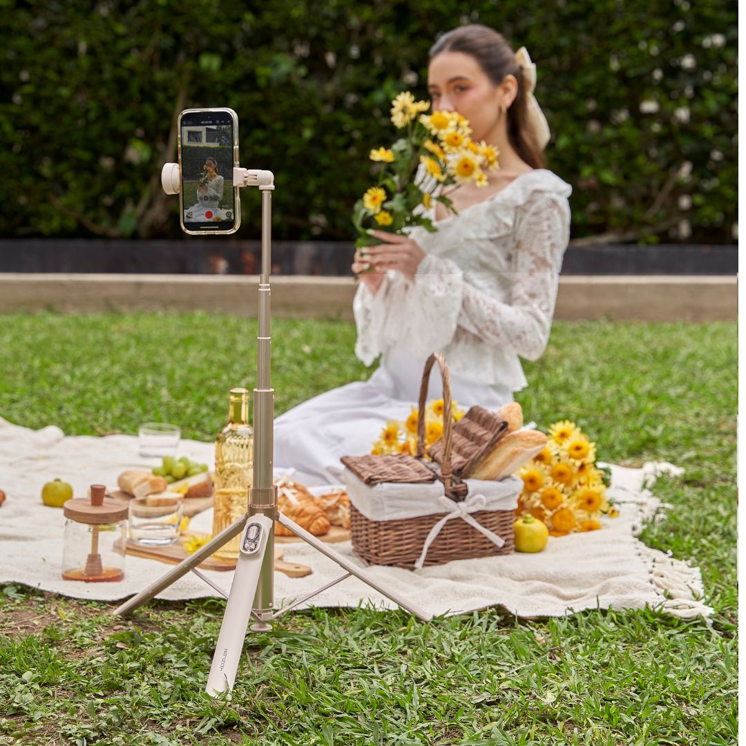 Este trípode se despliega automáticamente con solo colocarlo en el suelo, sin esfuerzo y en 1 segundo, para que empieces a grabar sin perder tiempo.