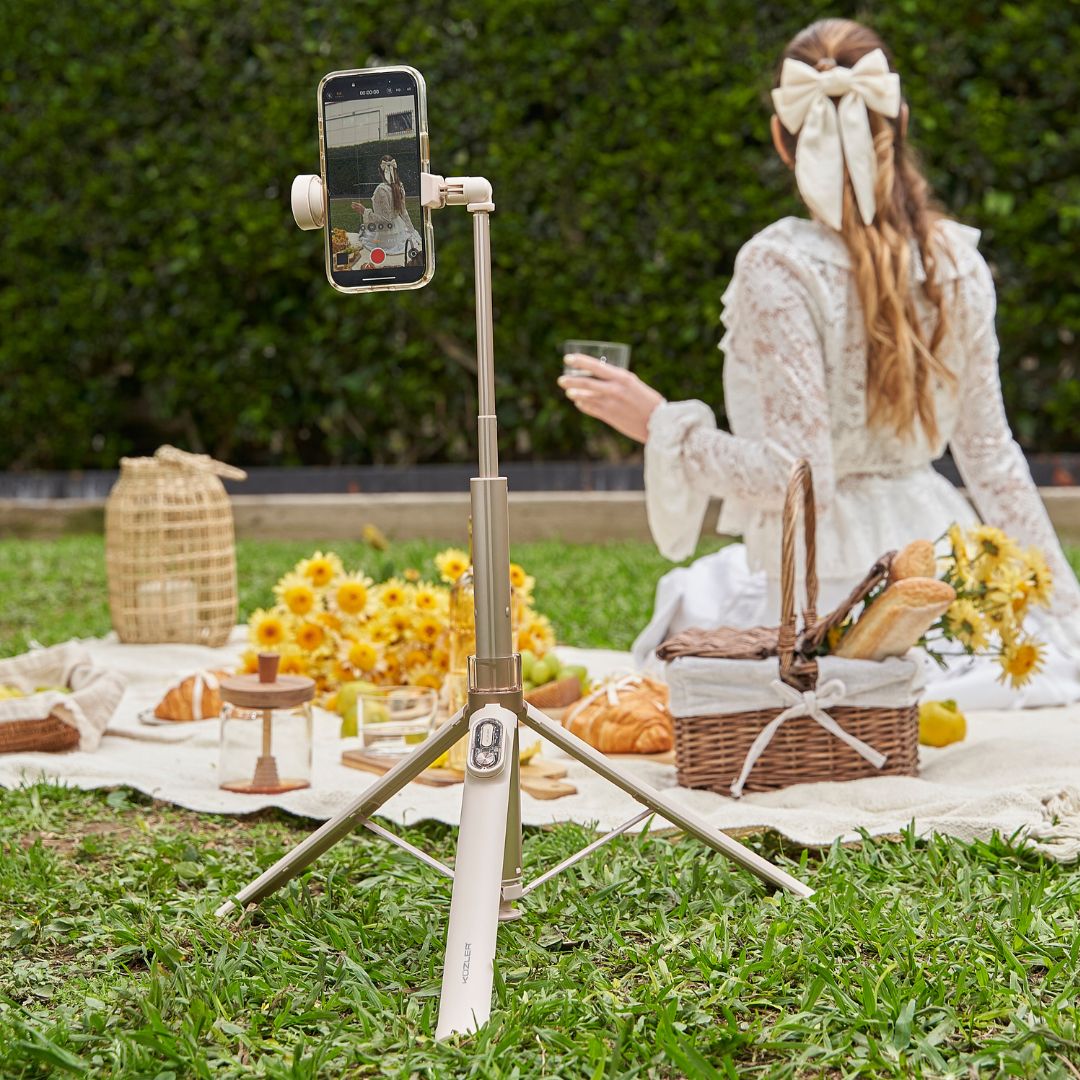 Este trípode se despliega automáticamente con solo colocarlo en el suelo, sin esfuerzo y en 1 segundo, para que empieces a grabar sin perder tiempo.