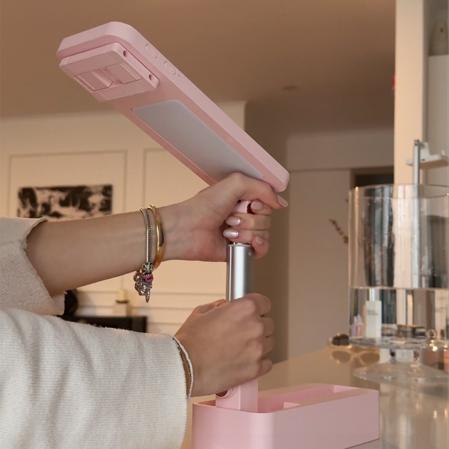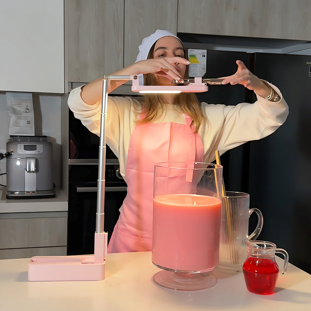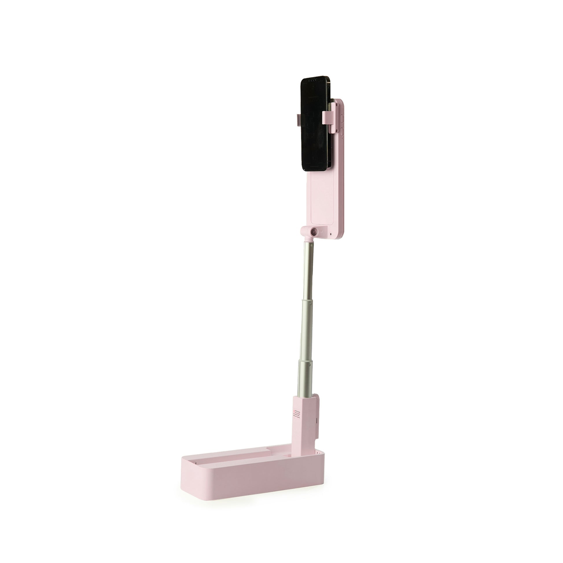 El Trípode Multifuncional 2.0 Rosado es un soporte optimizado para creadores de contenido que buscan practicidad, estabilidad y versatilidad: